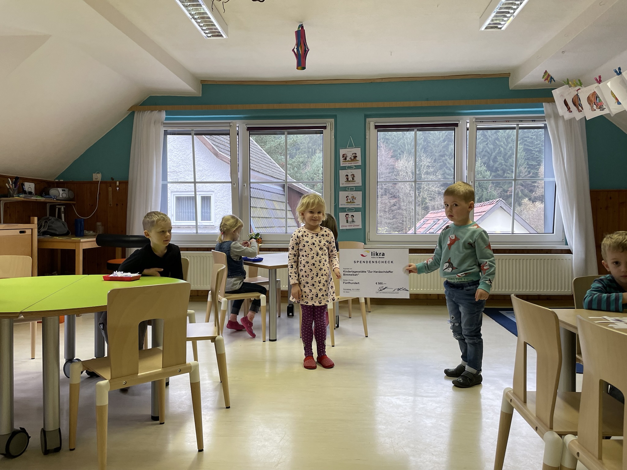 Die Finanzierung erfolgte zur Hälfte von der Gemeinde und zur anderen Hälfte über Spenden von der Sparkasse, der likra und des Fördervereins der Kindertagesstätte.