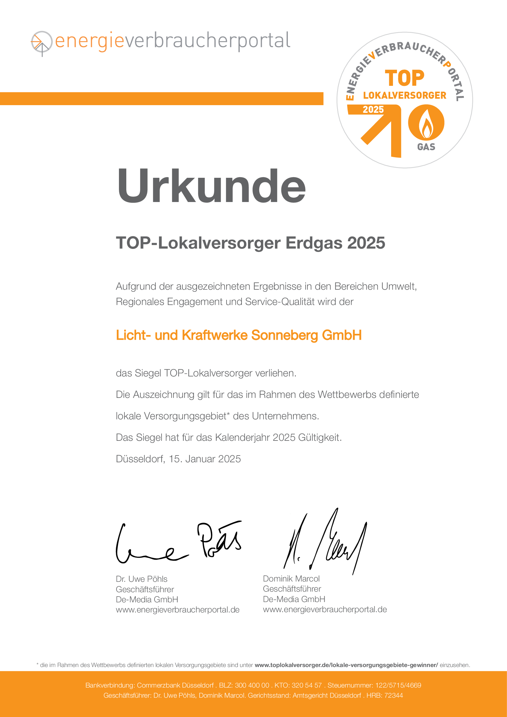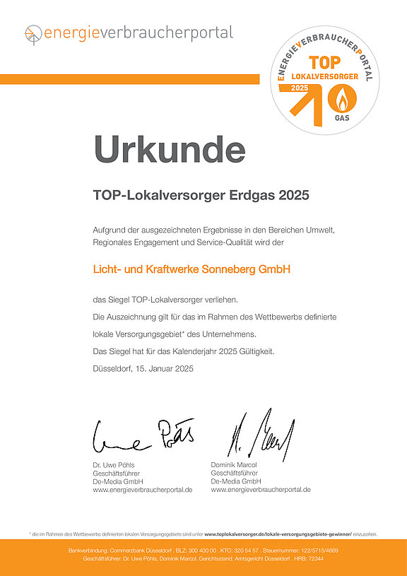 Wir sind auch in diesem Jahr wieder TOP-Lokalversorger 2025.